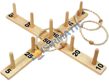 Un jeu d'adresse où vous devez lancer les anneaux sur le panneau vertical. Des règles simples adaptées à tous les ages.